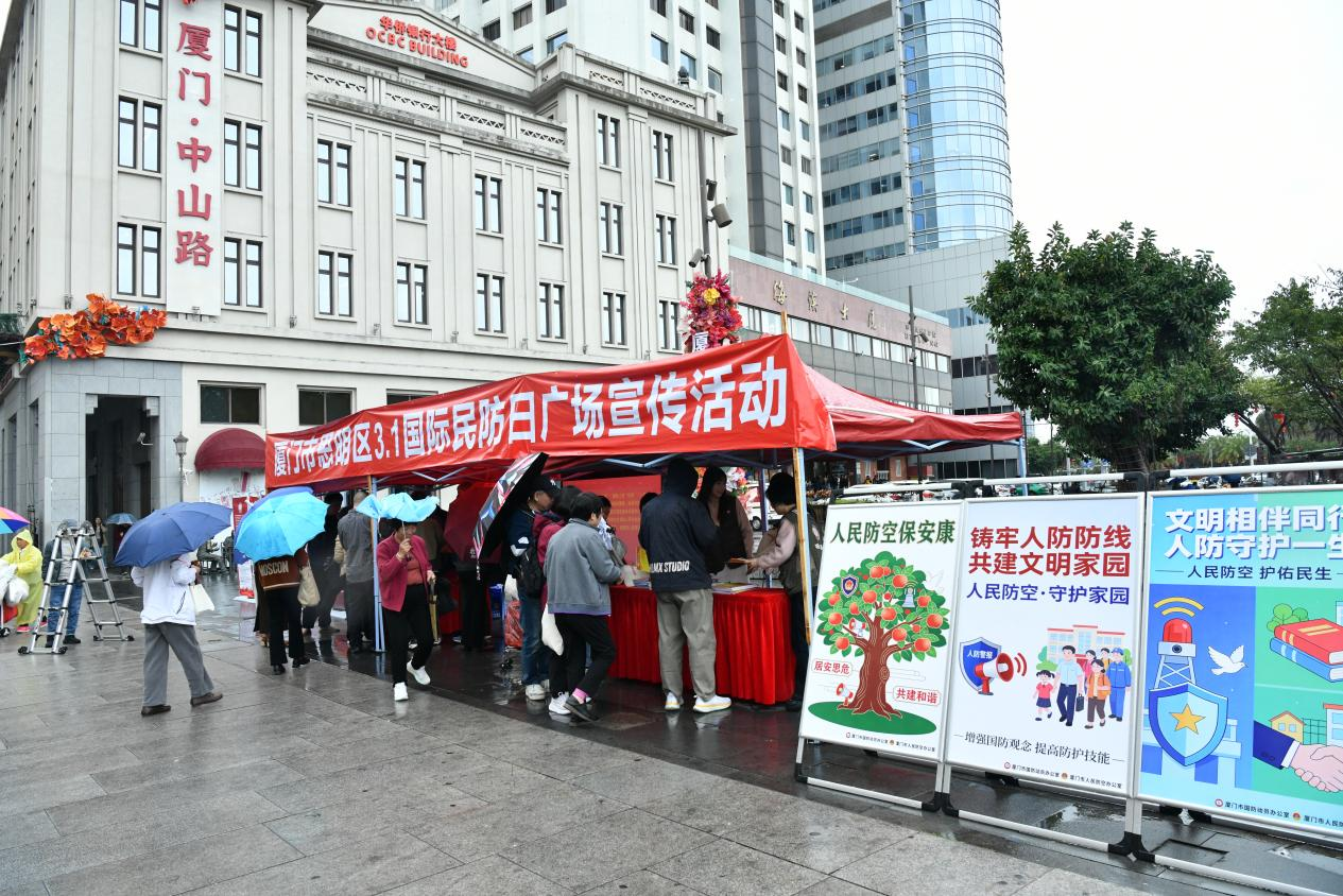 2月28日上午,市国动办在思明区中山路侨批广场开展 第54个“3・1国际民防日”主题宣传活动,以多样化形式普及民防知识、传授应急技能,进一步提升市民防空防灾和应急处置能力,营造“人人关注民防、人人参与民防、人人守护安全”的浓厚氛围。