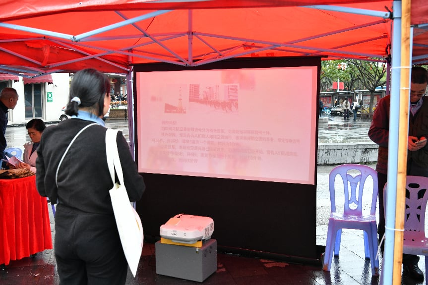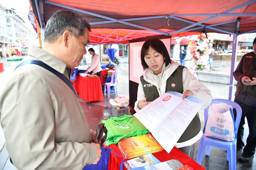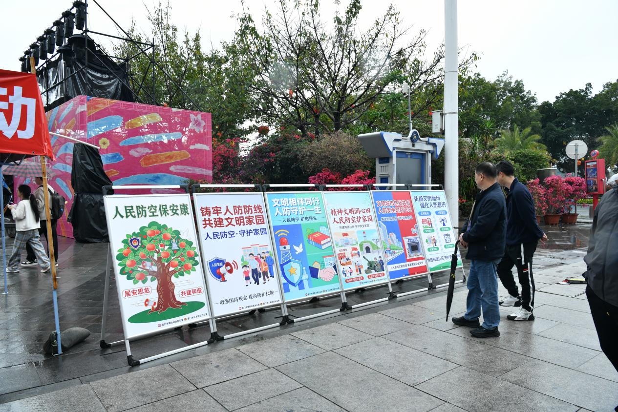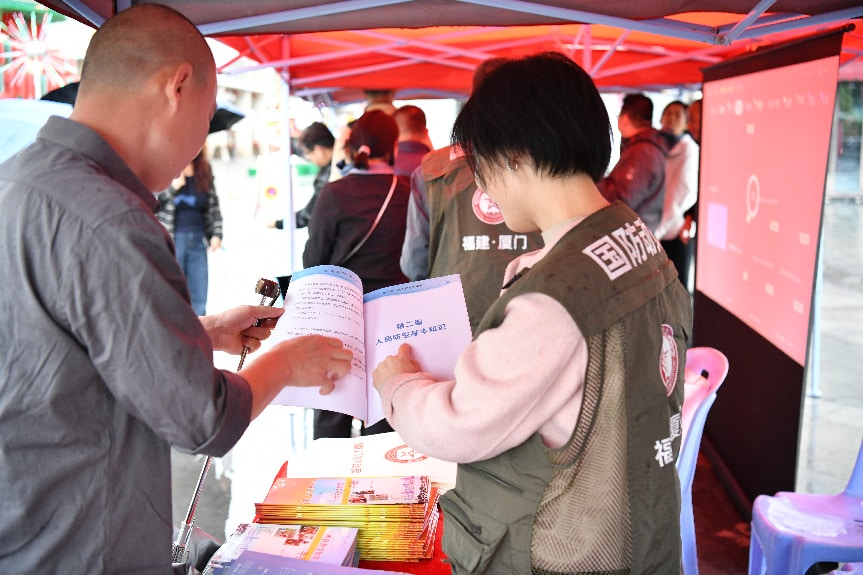 活动现场人气满满,各类宣传环节有序开展。电子屏上循环滚动播放民防科普短视频,直观讲解应急避险、自救互救的实用技巧;工作人员向过往市民、游客发放国际民防日定制宣传手册,内容涵盖防空警报识别、应急避难场所位置、家庭应急物资清单等核心知识,让民防常识随手可学。专业讲解员现场开设“民防知识小课堂”,用通俗易懂的语言解答市民关于突发事件应对的疑问,手把手指导简单的急救技能,让大家听得懂、学得会、用得上。同时,活动现场还张贴了国防、民防相关法律法规海报,向市民普及《中华人民共和国国防法》《中华人民共和国国防动员法》《中华人民共和国人民防空法》等内容,提升全民民防法治意识。